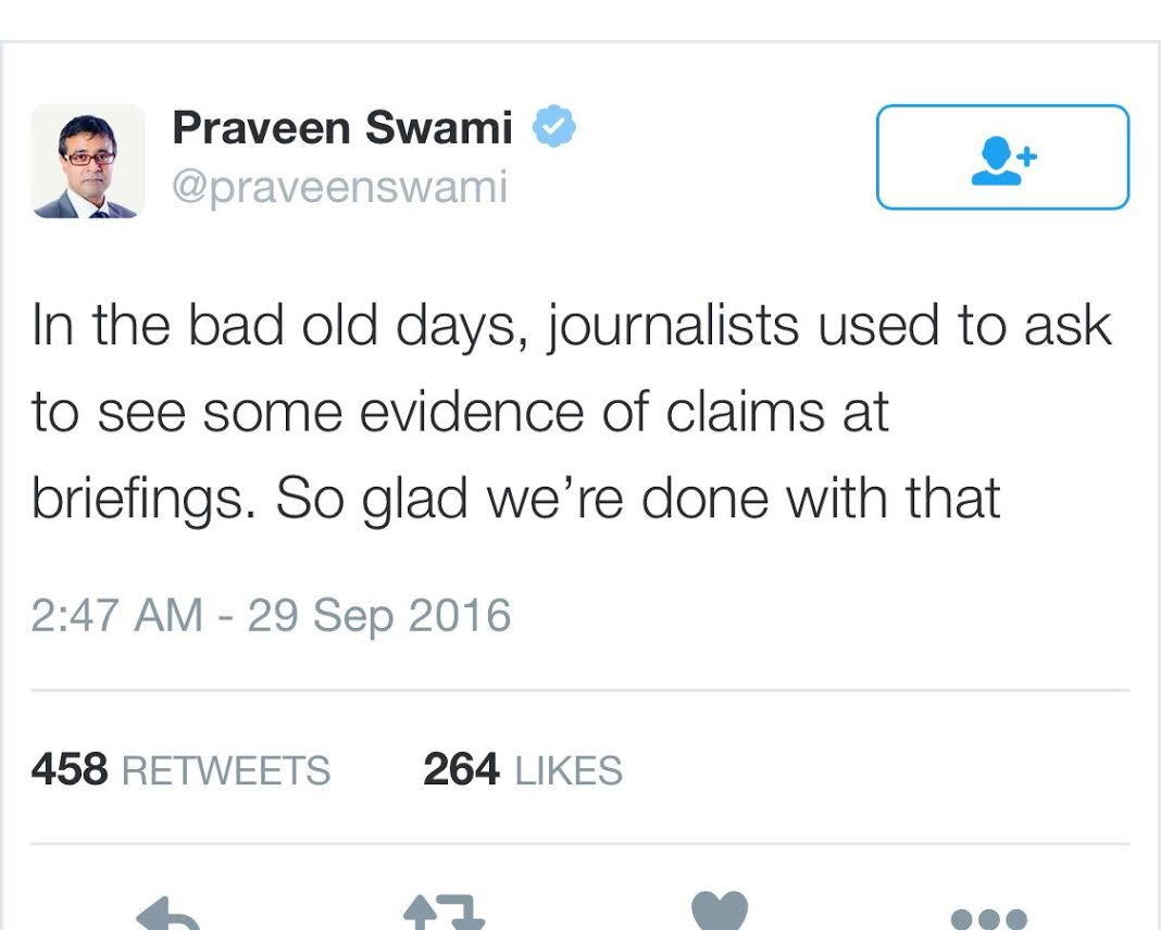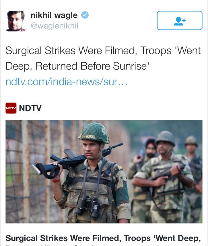 Next stage will be Srinivasan Jain Barkha Dutt et al meeting the families of terrorists killed in Pakisthan, confirming their docile headmaster parents, how the killed terrorists were interested in films , art etc and bringing out sob stories.