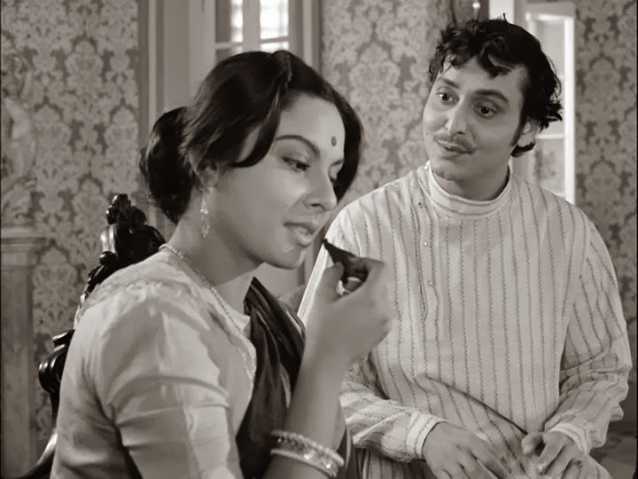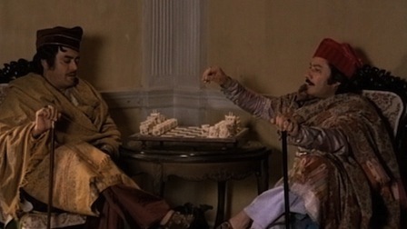 Self-absorbed men quietly play chess. : Shatranj ke Khiladi